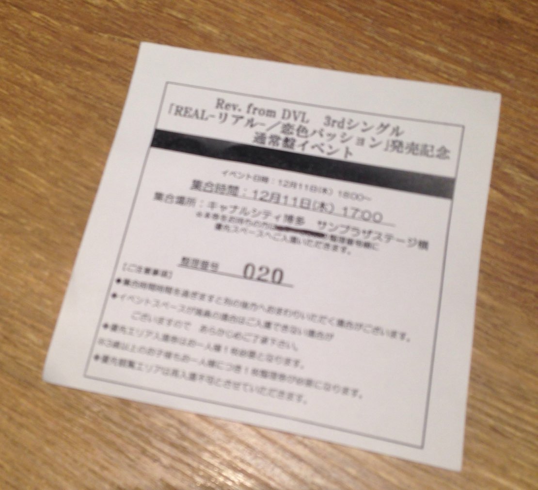 12/11 Rev.from DVLの3rdシングルリリースイベントに行ってきました。