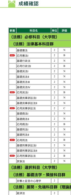 法科大学院前期の成績